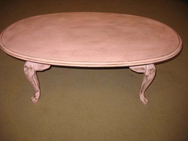 I decided to use it on a Queen Anne style coffee table as well. So I was careful this time. I unplugged the phone and put a plastic sheet on the floor and I EVEN changed into old clothes!! Impressive huh?! Who knew I was capable of such unbridled common sense?