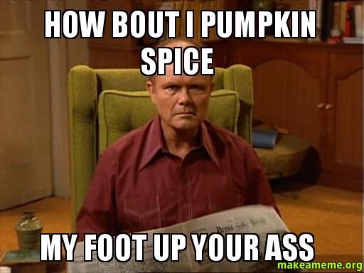 I have seen the future and it’s pumpkin spiced kale chips. I honestly didn’t think you could make kale worse but bugger me with a fish fork, y’all gone done it! Pumpkin spiced kombucha too. There’s no end to this. What’s next? Pumpkin spiced cremations? It’s about the only market left unbesmirched!