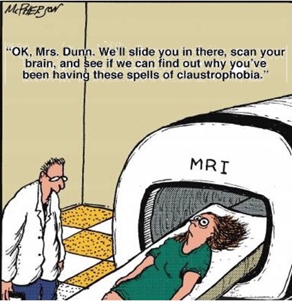 This is either the worst or the best thing I could have read today. I am usually not a person to go to Doctors but earlier this summer I began having some disturbing symptoms. The primary care Dr did blood work and decided I needed to see a neurologist. At the neurologist appointment last week he determined that I needed to have, amongst other things, 3 MRI’s (brain with contrast, upper spine and lower spine. I had already but considering whether or not I should have the one with contrast because I understand that sometime it does not fully leave the body and can cause some problems. When I scheduled the MRI’s I was told that I could have them all at the same time if I could handle 30 minutes in the tube. “No problem” I thought so I scheduled them all consecutively on the same day. Now I am rethinking this – maybe I will start with one to see how I do and reschedule the others. May be I just skip the whole thing and live with whatever is going on.