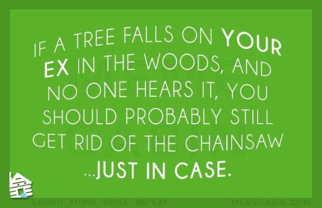 From the one being attacked by bees while trying to find some unobtrusive place to hide the chainsaw, thanks Britchy (the one who shouldn’t be left unsupervised) for the great chuckle!