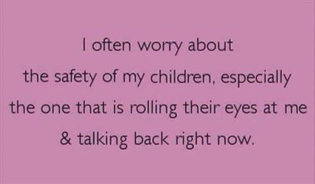 Any female judge would let you go free! For me, it’s not so much the talking back that I’m worried about today when I go to work in an hour and a half, but it’s the safety for the child who says they want to go shopping and I tell them to be ready AT 11am (or whatever time) and remind them over and over that AT 11am I am leaving to take them because I have other things I have to do for work. Then AT 11am, she decides that she is going to take a shower, then get dressed, then brush her teeth. Is there a cute picture for that one?