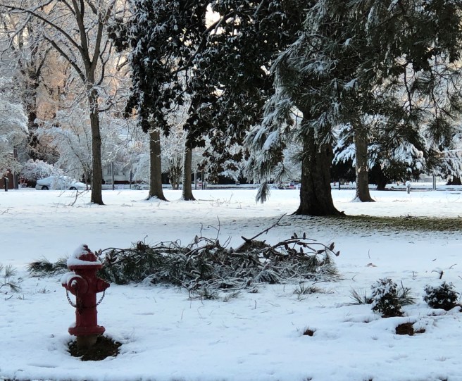 Looks like you have some lovely, majestic Willow Oaks in your yard, too. Glad you and the family are safe.